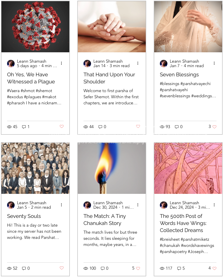 Last year Leann and a group of more than seventy people published a Passover Haggadah, which combined art and text called ANU/WE : A Haggadah of Many Voices. Her blog called Words Have Wings has been an online presence for Torah commentary through poetry. A collection of her poems was published in 2023, called Words Have Wings.